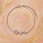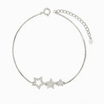 Add a touch of celestial charm to your jewellery collection with this enchanting 925 sterling silver bracelet, featuring a trio of delicately crafted stars. The design showcases a perfect mix of cutout, enamel-filled, and zircon-studded star motifs, making it an eye-catching yet graceful accessory for all occasions.