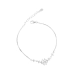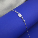 Bring a touch of sparkle and elegance to your wrist with this 925 sterling silver floral bracelet. The centerpiece features a beautiful flower motif crafted from shimmering heart-shaped zircon stones, forming delicate petals that radiate brilliance. Additional round-cut zircon accents are set along the chain, adding extra shine and sophistication.