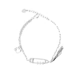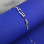 Add a touch of modern elegance to your look with this 925 sterling silver bracelet, designed in a unique safety pin-inspired shape. The bracelet features a row of sparkling zircon stones along the sleek pin frame, symbolizing both strength and style. A delicate open-heart charm dangles gracefully, adding a hint of romance to the design.Crafted with a fine adjustable chain and tassel drop ends, this bracelet ensures a perfect fit for any wrist size. Its contemporary yet versatile design makes it ideal for daily wear, casual outings, or gifting to a loved one.