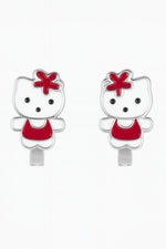 Add a playful charm to your collection with these adorable kitty enamel earrings, featuring a cheerful red outfit and a matching bow accent. Designed in a cute cartoon style with polished silver edges and a glossy finish, these earrings are perfect for children, teens, and lovers of fun, youthful accessories. Lightweight, hypoallergenic, and full of personality – ideal for everyday wear or as a delightful gift!