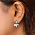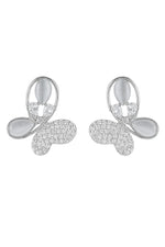Add a whimsical touch to your style with these elegant butterfly stud earrings from Svetaka. Crafted in 925 sterling silver with a rhodium finish, each earring features delicate butterfly wings embellished with shimmering pavé-set zircon stones and smooth white cat’s eye accents for a soft, luminous glow. The graceful design captures the beauty of nature, making them perfect for both casual and special occasions.