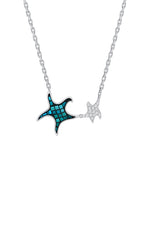 Embrace the beauty of the ocean with this 925 sterling silver dual starfish pendant necklace. The design features two starfish charms — one adorned with a mosaic of vibrant enamel squares, and the other pavé-set with sparkling zirconia stones. The combination of rich ocean tones and shimmering crystals creates a fresh, coastal-inspired look perfect for beach lovers and summer styling.