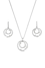 Elevate your style with this 925 sterling silver spiral pendant and earring set, featuring a unique double-circle swirl design accented with delicate cubic zirconia stones. The pendant hangs from a sleek box chain, while the matching drop earrings add movement and charm, making this set perfect for both casual and formal looks. Crafted with a polished finish and hypoallergenic, tarnish-resistant silver, it offers lasting shine and comfort.