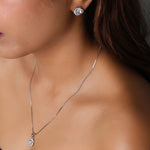 Elevate your elegance with this exquisite round solitaire pendant and earring set from Svetaka, meticulously crafted in premium 925 sterling silver. Featuring a brilliant-cut central zircon stone surrounded by a halo of micro-pave zircons, the design mimics the dazzling sparkle of real diamonds while offering a modern yet timeless appeal.