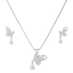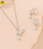 Unleash your inner sparkle with this delicate butterfly drop pendant and earring set from Svetaka, designed to bring whimsy, elegance, and brilliance into one graceful piece. Crafted in high-quality 925 sterling silver, the set features a shimmering butterfly motif embellished with micro-pave zircon stones and a dangling teardrop-cut zircon for extra shine and movement.