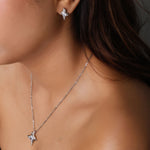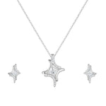 Shine brighter than ever with this stunning Starburst Pendant & Earring Set from Svetaka, designed to reflect the brilliance of the night sky. Crafted in premium 925 sterling silver, this celestial-inspired set features an asymmetrical star motif, highlighted by a princess-cut center zircon and delicate accents of pavé-set stones.