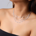 Make every outfit shine with our Crystal Drop Three-Layered Silver Necklace, a stunning multi-strand design that blends elegance with modern charm. Featuring three delicate silver-plated chains adorned with sparkling crystal drops, this necklace creates a graceful layered look that catches the light beautifully.