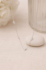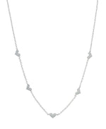 Celebrate love and elegance with this 925 sterling silver multi-heart necklace, featuring five delicate heart-shaped charms evenly spaced along a fine silver chain. Each heart is pavé-set with zirconia stones, adding a subtle sparkle that catches the light beautifully. Perfect for layering or wearing as a statement of romance, this necklace blends minimalism with timeless charm.