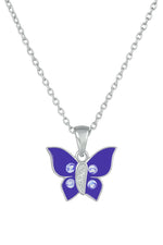 Delicately crafted in 925 sterling silver, this Violet Wings Butterfly Silver Pendant radiates charm and grace with its rich violet enamel wings and finely textured silver body. The elegant butterfly design symbolizes transformation and beauty, making it a perfect gift or personal statement piece. Set on a minimal silver chain, it blends youthful spirit with timeless sophistication.