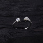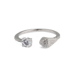 Add a touch of modern elegance to your jewellery collection with our Sterling Silver Sparkling Edge Ring by Svetaka. Crafted in premium rhodium-coated 925 silver, this designer piece features a unique adjustable open-ended style. One end is crowned with a brilliant solitaire zircon, while the other showcases a pave-set triangular tip, giving the ring a contemporary and stylish edge.