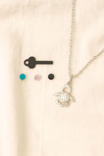 Celebrate love, protection, and individuality with this 925 sterling silver angel pendant necklace featuring a sparkling round  zircon at its center. The pendant comes with three interchangeable birthstone charms in turquoise blue, soft lavender, and jet black, allowing you to customize your look for any mood or occasion. A sleek  key tool is included for easy stone changes, making this piece both stylish and versatile.