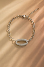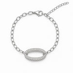 Minimal yet dazzling — this 925 sterling silver bracelet features a bold oval-link centerpiece, meticulously encrusted with sparkling zircon stones for a refined statement look. The adjustable cable chain ensures a perfect fit, while the polished silver finish gives it a contemporary edge.
