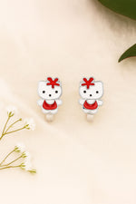 Add a playful charm to your collection with these adorable kitty enamel earrings, featuring a cheerful red outfit and a matching bow accent. Designed in a cute cartoon style with polished silver edges and a glossy finish, these earrings are perfect for children, teens, and lovers of fun, youthful accessories. Lightweight, hypoallergenic, and full of personality – ideal for everyday wear or as a delightful gift!