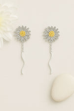 Brighten up your style with these playful and elegant daisy-inspired drop earrings, crafted in premium 925 sterling silver. The design features intricately detailed silver petals radiating from a vibrant yellow-gold bead centre, capturing the natural charm of blooming daisies. The flowers are connected to slender, wavy silver stems for a graceful, whimsical dangle effect.