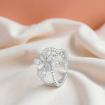 Add a touch of timeless elegance with the Floral Grace Silver Ring by Svetaka, beautifully crafted in premium 925 sterling silver. Designed with a delicate floral motif and accented with sparkling zircon stones, this adjustable ring embodies feminine charm and modern sophistication. Its intricate detailing and polished finish make it the perfect accessory for both everyday wear and special occasions.