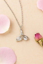 Make a stylish ocean-inspired statement with this 925 sterling silver mermaid tail pendant necklace. The elegant pendant features a sleek, open-frame mermaid tail design, accented with brilliant-cut zircon stones on each fin for a sparkling finish. The piece hangs gracefully from a fine silver chain, creating a perfect balance of elegance and nature-inspired charm.