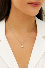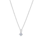 Elevate your everyday elegance with this 925 sterling silver solitaire pendant necklace. The design features a brilliant round-cut zirconia stone in a classic four-prong setting, suspended from a delicate bail adorned with micro-pavé CZ accents. Hanging on a fine silver chain, this timeless piece adds a touch of sparkle to both casual and formal looks.