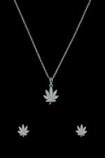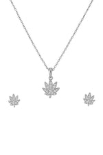 Sparkling Leaf Silver Pendant Set