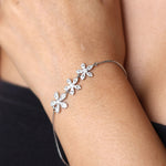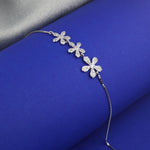 Delicately crafted for lovers of elegance and charm, this 925 sterling silver bracelet by Svetaka features three blooming flowers, each designed with zircon-studded petals that shimmer with every movement. The floral motifs are perfectly aligned, giving the bracelet a graceful and feminine appeal. With its adjustable sleek chain, this bracelet ensures a comfortable fit, making it versatile for daily wear, festive occasions, or as a thoughtful gift. The sparkling flower design symbolizes beauty, growth, and new beginnings, making it not just jewellery but a meaningful accessory.