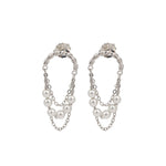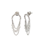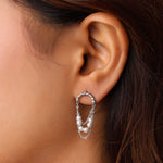 Redefine elegance with these silver loop earrings, featuring a twisted hoop design adorned with delicate layered chains and dainty white pearls. The unique drop style combines modern sophistication with timeless charm, making them a versatile accessory for both casual wear and special occasions.